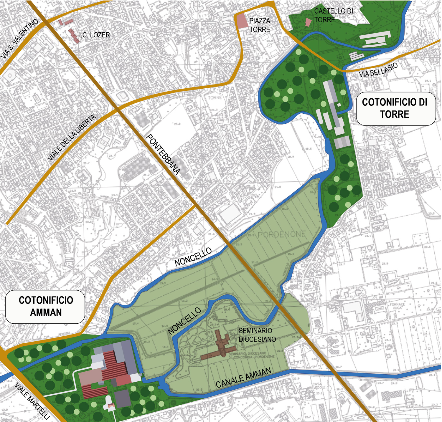 “in principio era il Verbo”: come ci ricorda il Vangelo di Giovanni, il punto di partenza dovrà essere il nome, quel condensato memorabile d’identità che crei immediatamente l’immagine di un ambiente ricomposto nel suo valore complessivo e unitario. Noi abbiamo pensato a “TERRANAONIS”, “TERRA DEL NONCELLO”, terra del fiume che unisce e lega i tesori di Pordenone. Che ha sedimentato la sua storia. Ma anche terra sostenibile di future conquiste: ambientali, sociali, economiche, culturali.